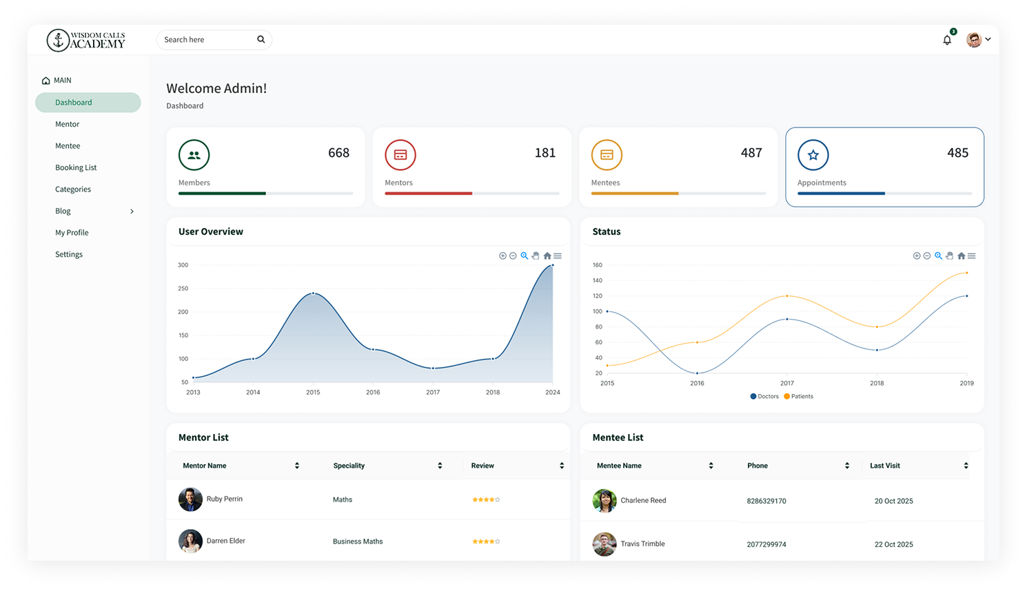 Our platform simplifies the mentorship journey for everyone involved.From managing sessions to tracking growth, everything is designed to make progress intentional and accessible.